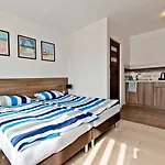 يحتوي مكان الإقامة على الشرفة ومنطقة الجلوس، ويتميّز بوسائل راحة عصرية مثل مكيف الهواء، فضلاً عن الإنترنت عالي السرعة والتلفزيون. وتتميّز هذه الشقة بأرضيات مبلّطة. تتوفّر أسرّة مع الوسائد الزغبية المضادة للحساسية تحت تصرف الضيوف. تشتمل مرافق الحمام على مقصورة الدوش والمرحاض المنفصل، فضلاً عن ملاءات الحمام والمناشف.